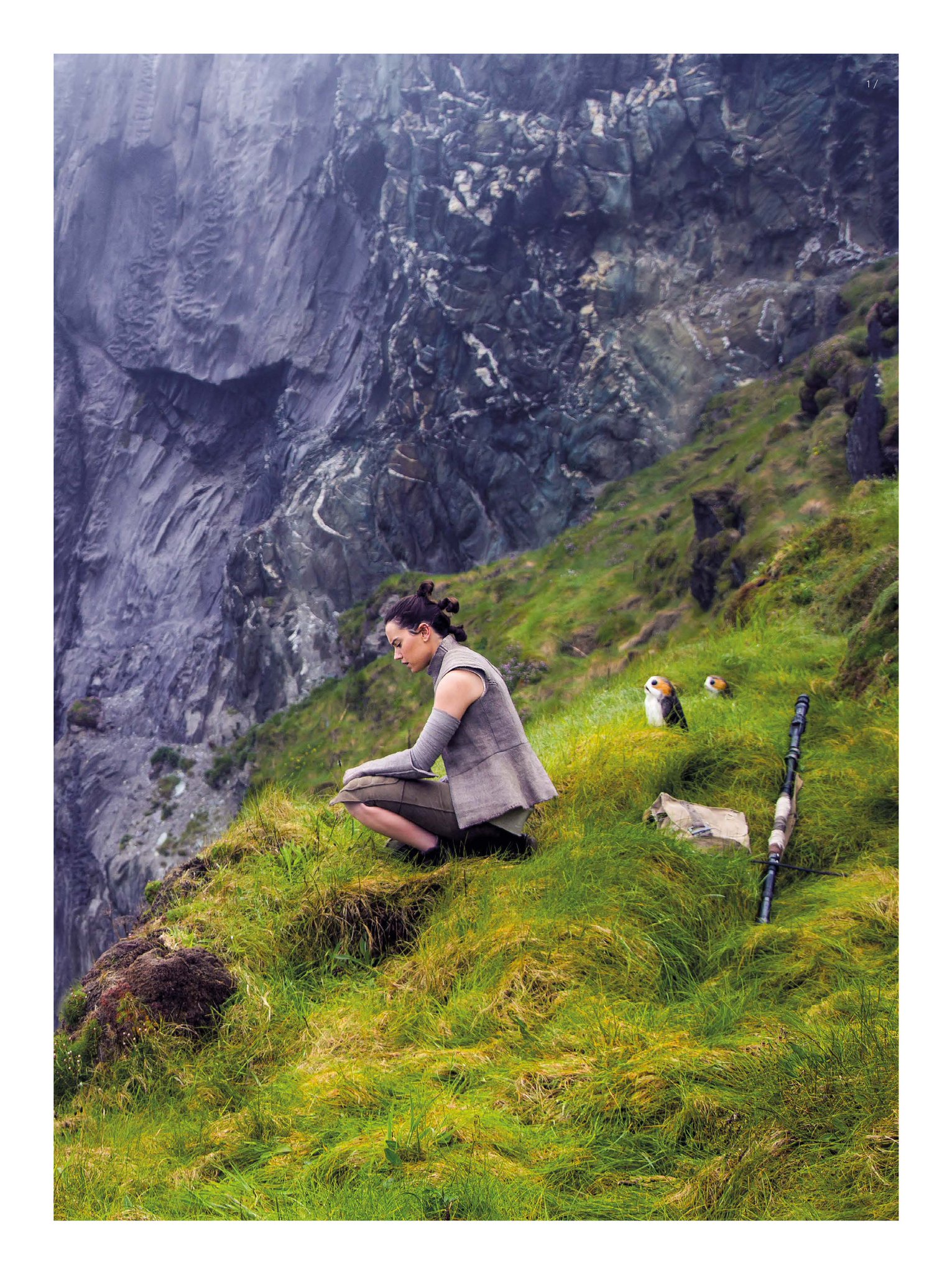 NEW: Wider shot of Rey finding the lightsaber near some porgs on Ahch-To from Star Wars Insider June #TheLastJedi.