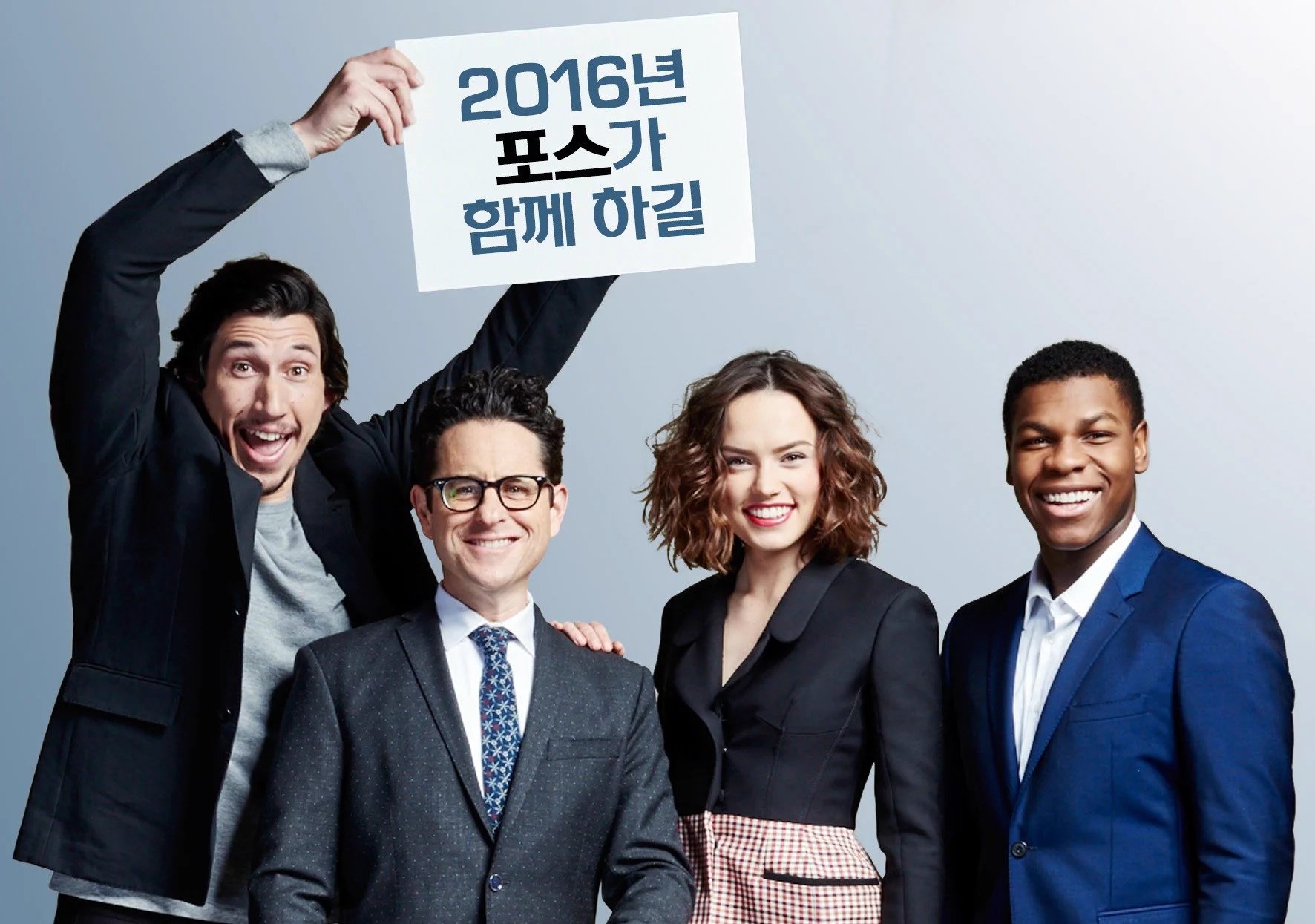 Daisy and co-star and "Bestie" Adam Driver (Kylo Ren/Ben Solo) with John Boyega (Finn) and J.J. Adrams Promote TFA on December 9th, 2015 in South Korea.