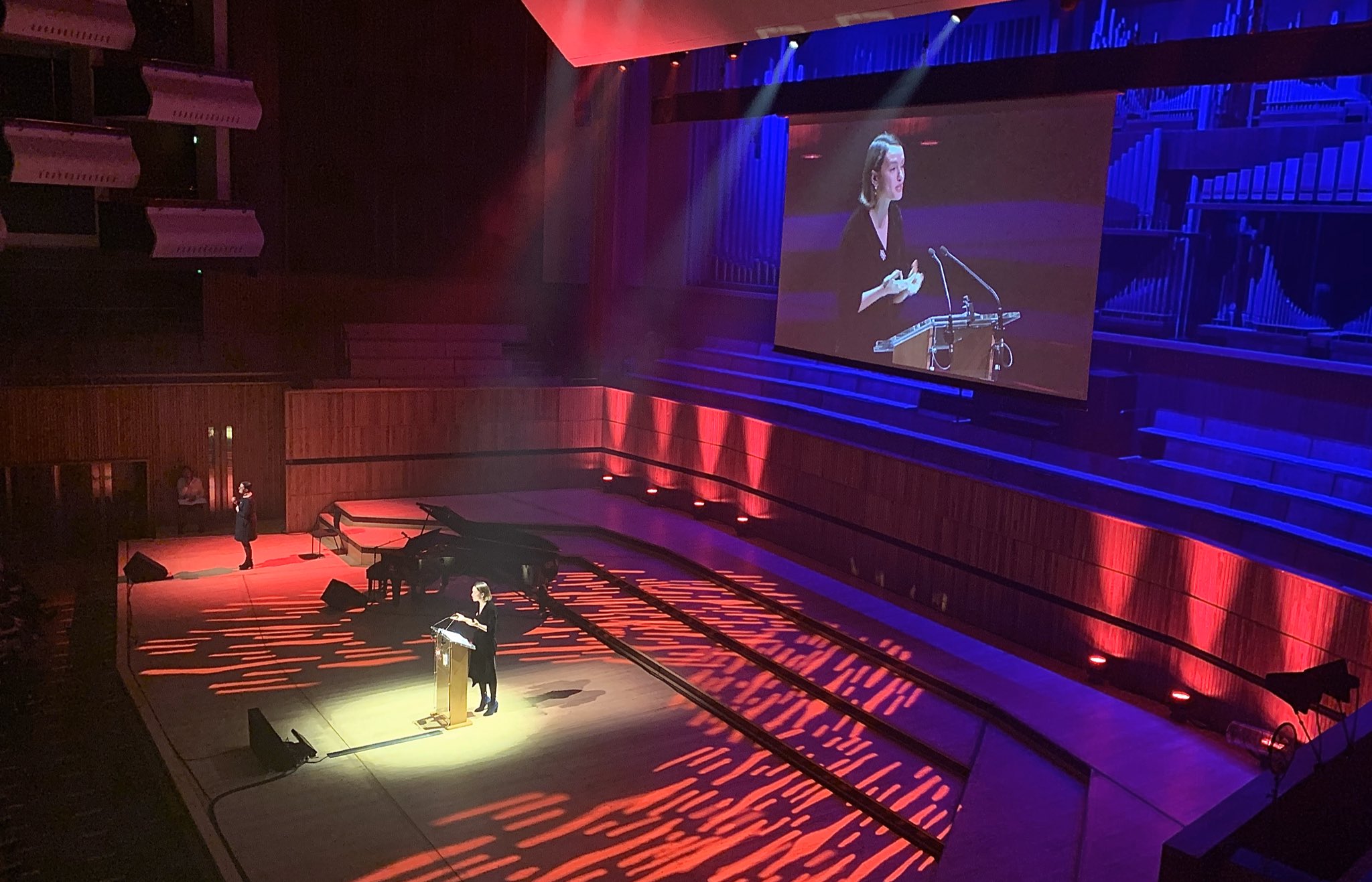 Daisy with Olivia Colman, Amanda Abbington, Rose McGowan, Adwoa Aboah, Ncuti Gtwa, Sally Philips and Meera Syal at Letters Live at WOW Women Of The World Festival at Southbank Centre on March 8th, 2020 in London, England.