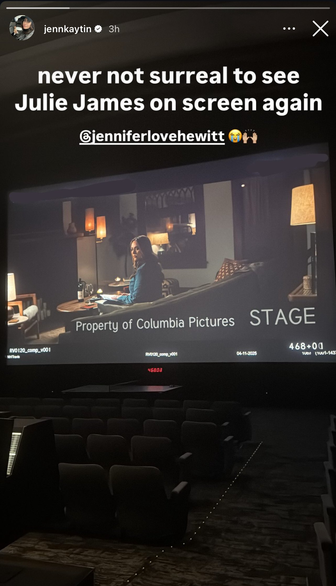 From Jennifer Love's Instagram Stories on 4/26/25.